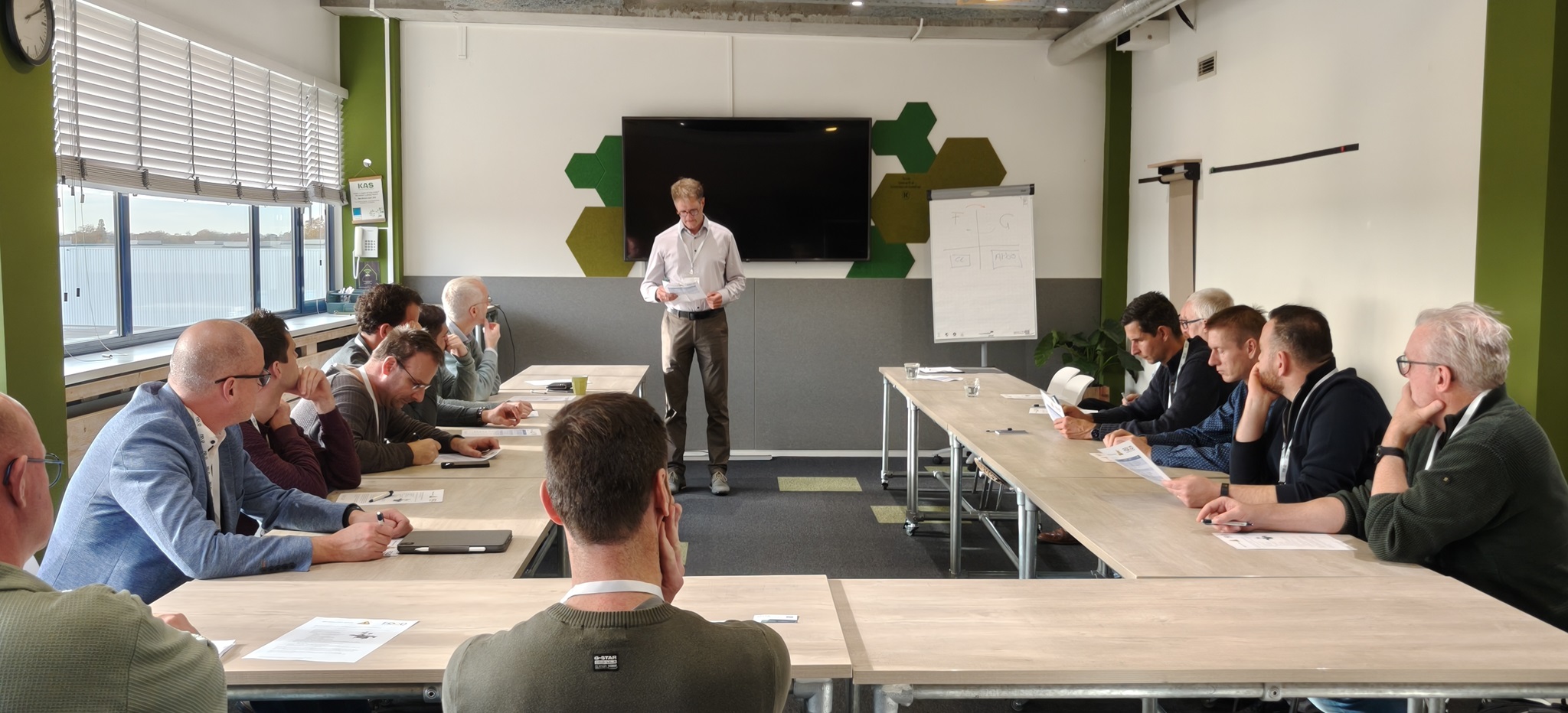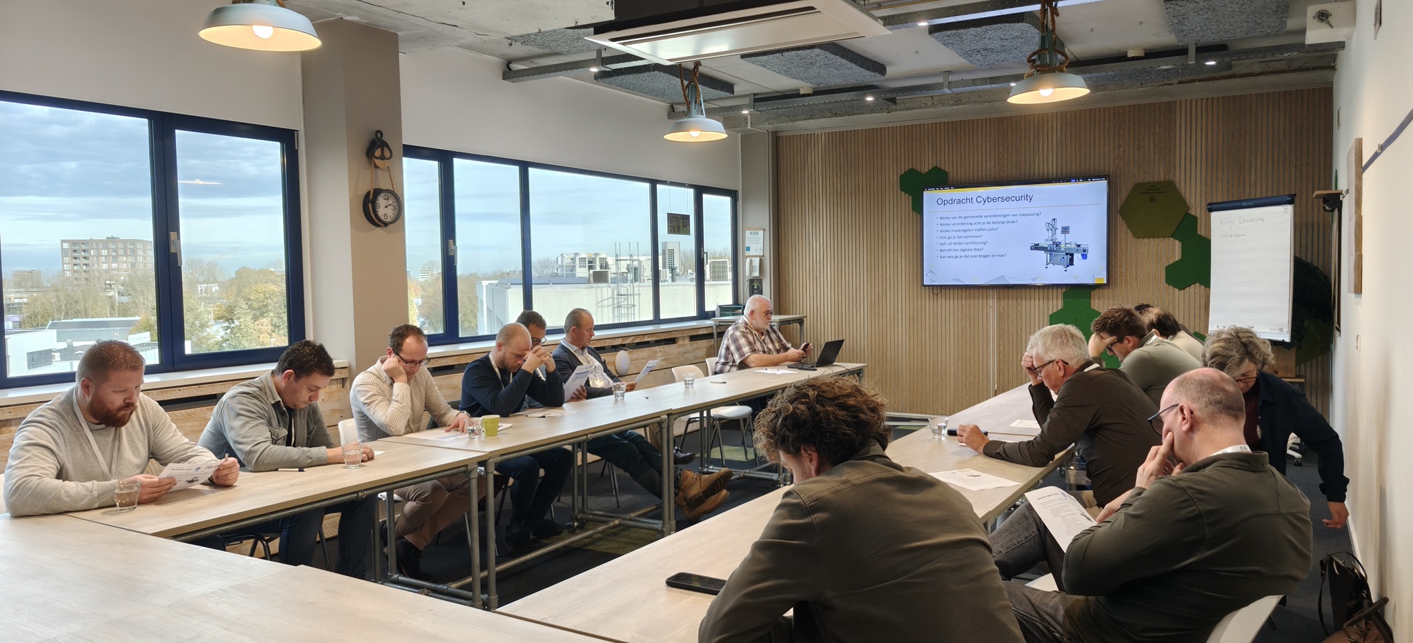 Na een plenaire introductie over de belangrijkste veiligheidsthema’s, van mechanisch en thermisch tot ATEX en cyberveiligheid, gingen deelnemers in groepen aan de slag met het ontwerpen van een afvulmachine voor vloeibare voedingsmiddelen. Ieder team werkte vanuit één veiligheidsperspectief: